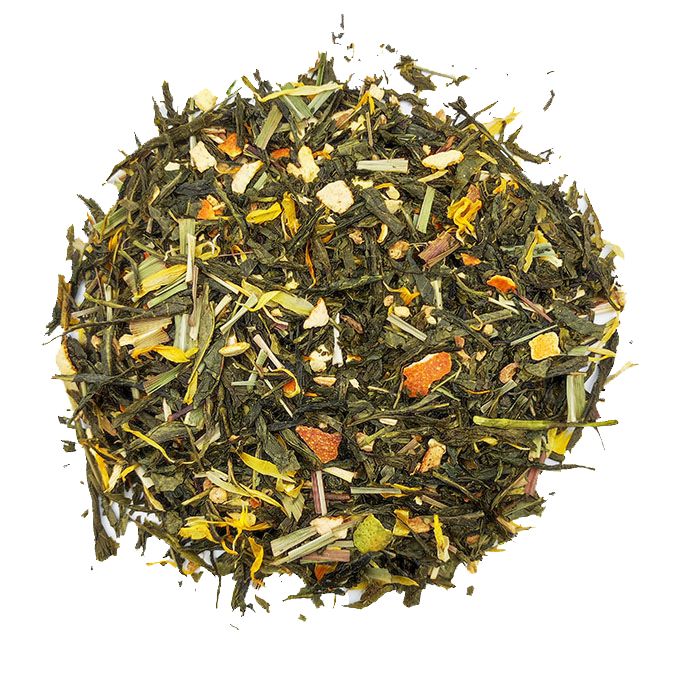 Чай Лимон с имбирем с ярким цитрусовым ароматом лемонграсса с лимоном. Насыщенный, островато-сладкий, с приятной терпкостью, легкой кислинкой.
